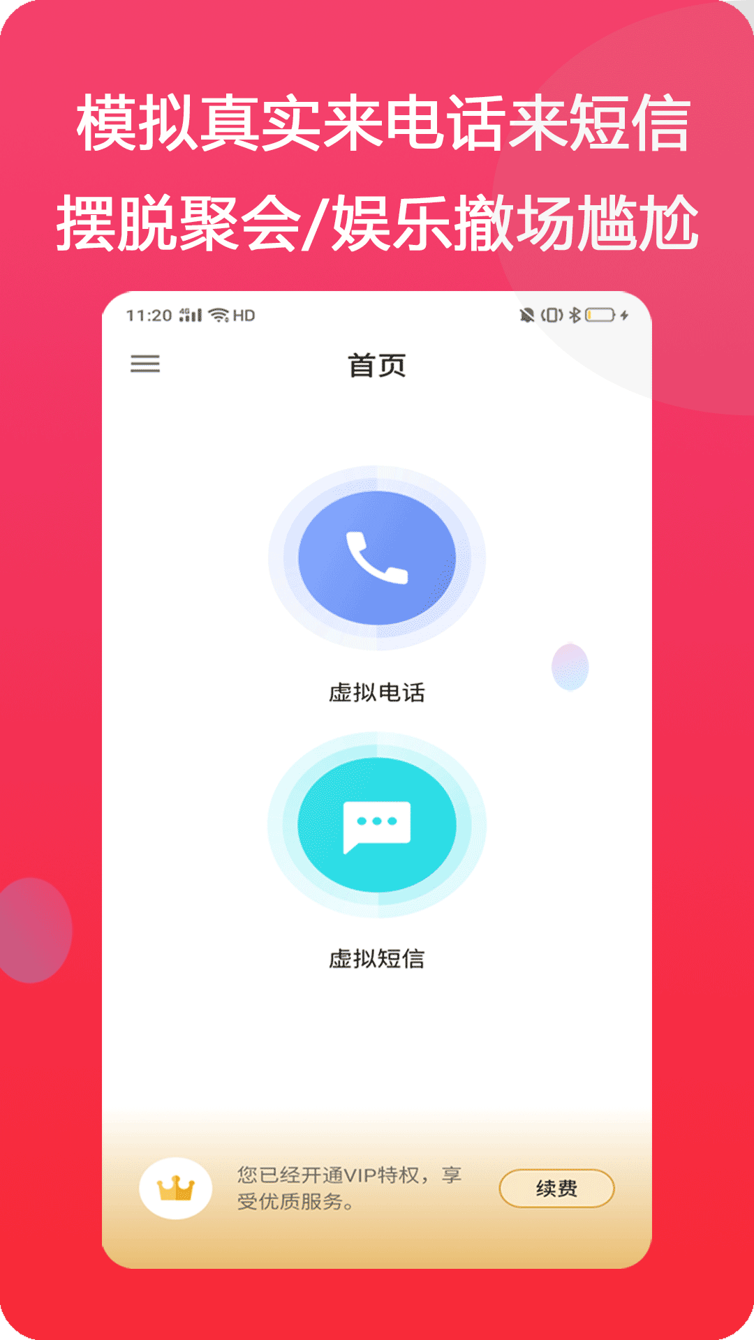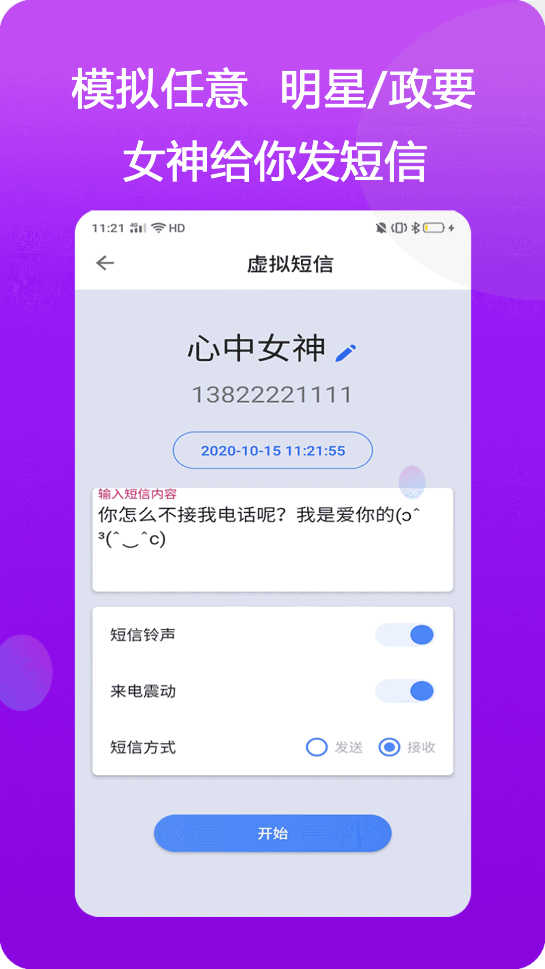 虛擬任意人、時間、歸屬地、號碼、通話聲音打來的電話;還能虛擬來短信發短信等短信聊天哦